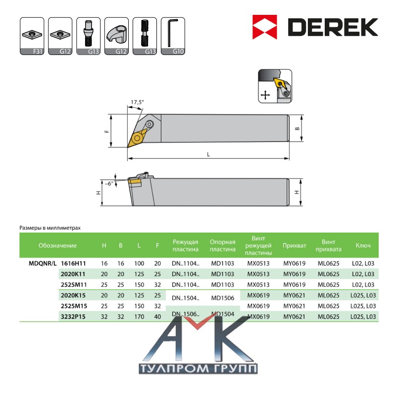 - Обозначение резца:MDQNR/L