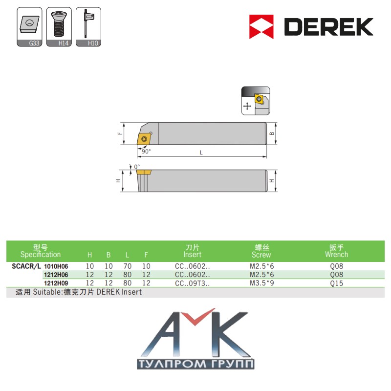 - Обозначение резца:SCACR/L