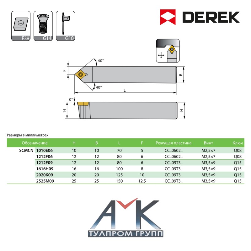 Резец (державка токарная) для наружного точения артикул SCMCN 1010E06, для сменных пластин, от производителя DEREK