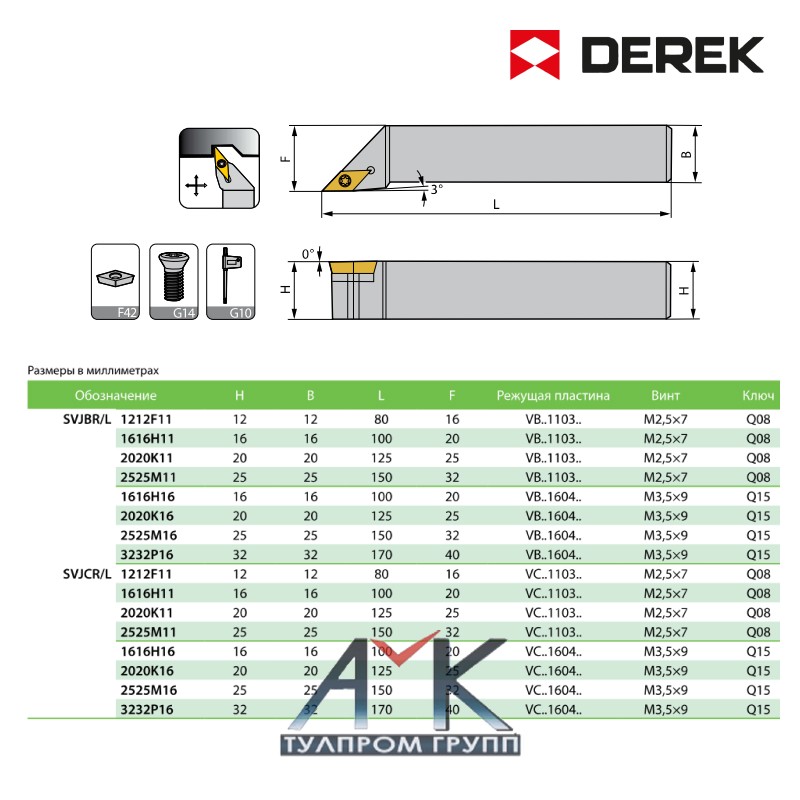 Резец (державка токарная) для наружного точения артикул SVJBL 3232P16, левый, для сменных пластин, от производителя DEREK