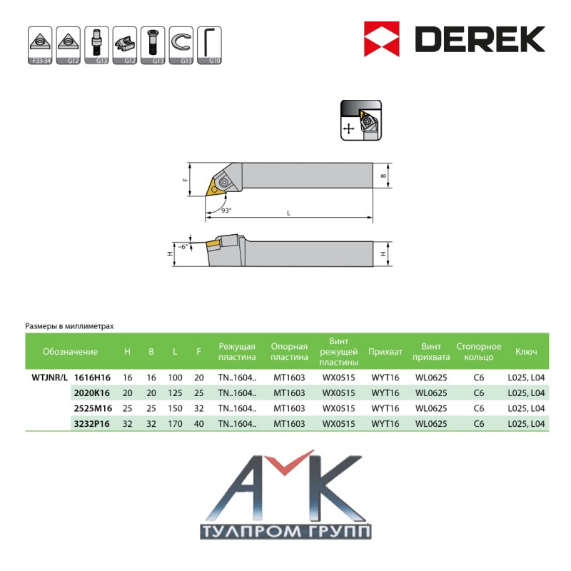 - Обозначение резца:WTJNR/L