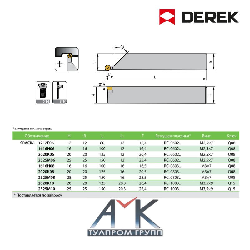 - Обозначение резца:SRACR/L