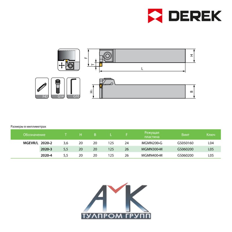 Резец/державка токарная, канавочный арт. MGEVL 2020-2, левый, для сменных пластин, от производителя DEREK