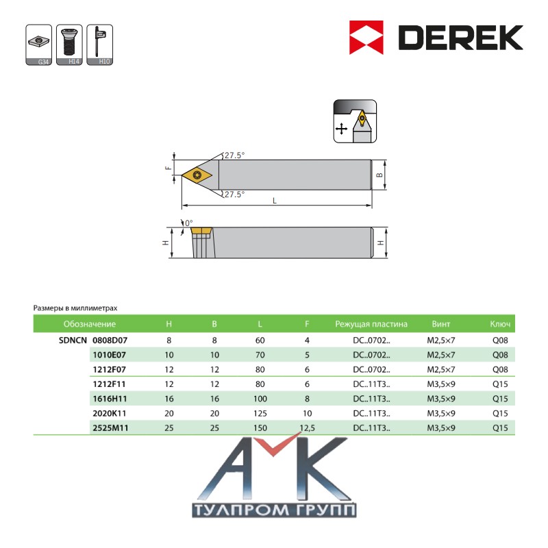 Подходит для совместной работы с твердосплавными пластинами "DC..0702..".