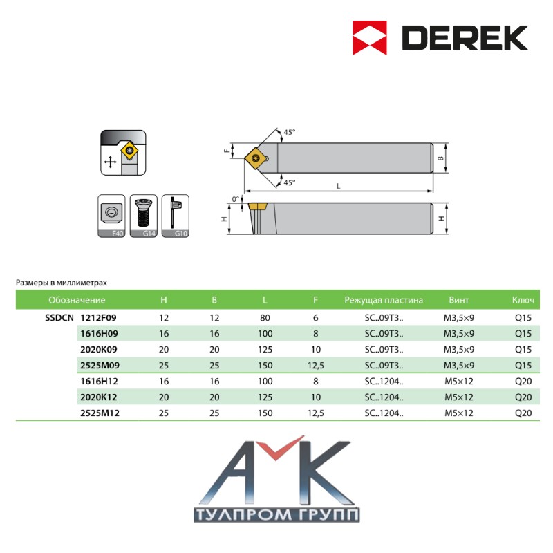 Резец (державка токарная) для наружного точения артикул SSDCN 1212F09, для сменных пластин, от производителя DEREK