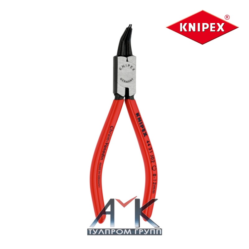 Щипцы / Съемники для стопорных колец J02 арт.53091002, с изогнутыми губками под 45°, для внутренних и наружных стопорных колец, от KNIPEX
