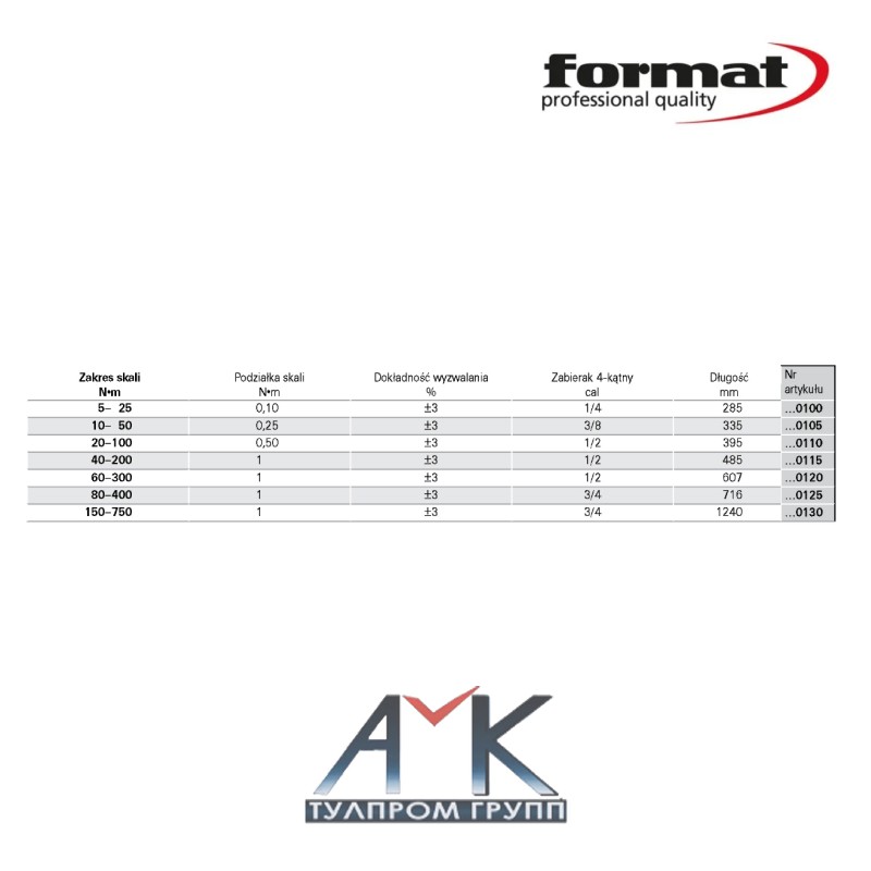 Динамометрический ключ арт.6238 0100 Fplus, диап. измерения 5-25 N*m, дискретность 00,10 N*m, от FORMAT