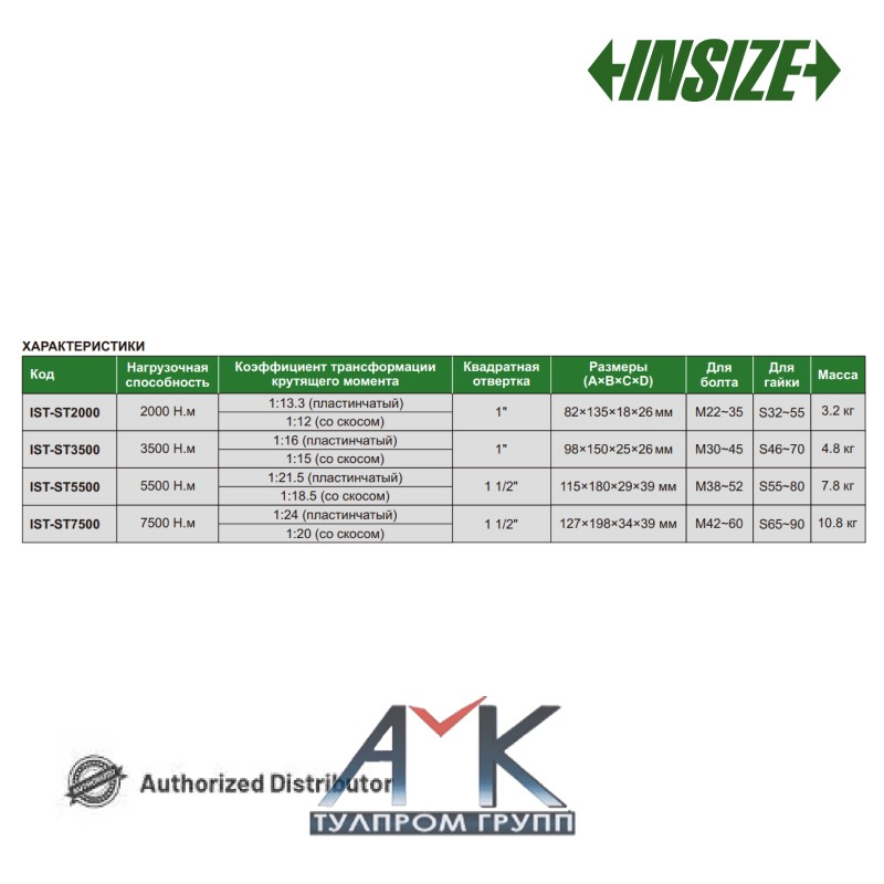 Мультипликатор/механический усилитель крутящего момента шлицевого типа арт.TM5500, с удлинителем, от INSIZE
