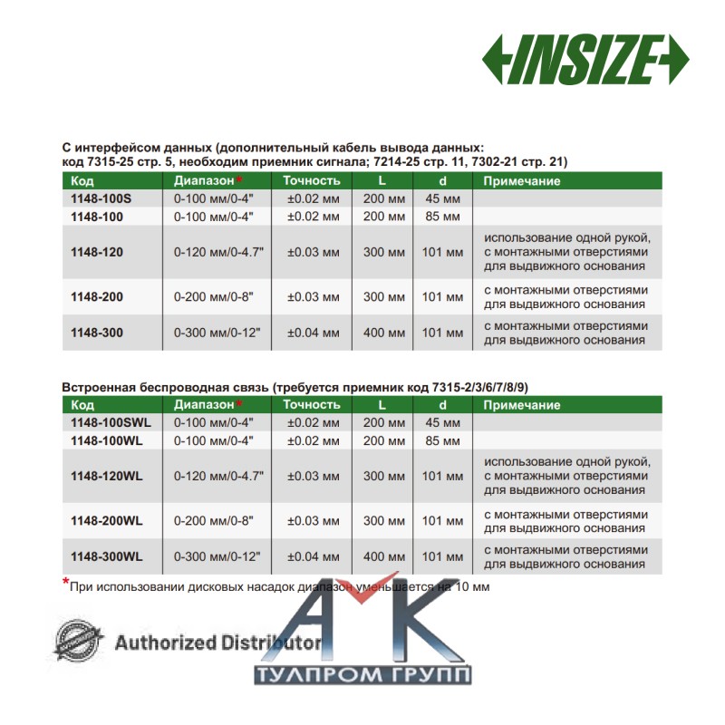 Цифровой глубиномер с круглой глубинной линейкой арт. 1148-100 от производителя INSIZE.