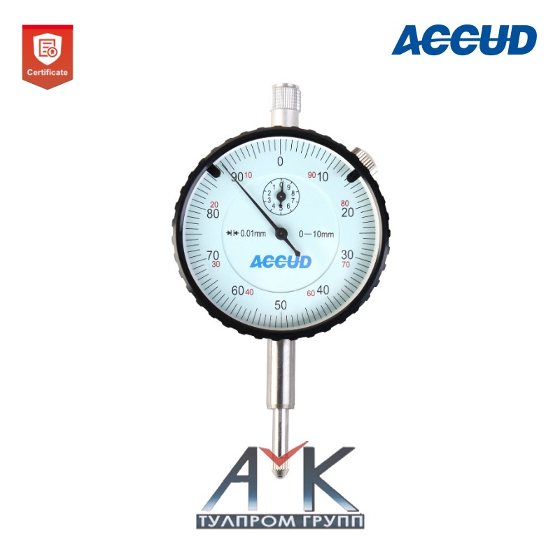 Индикатор часового типа арт.223-010-12, диап. измерения 0-10 мм, дискретность 0,01 мм, шкала 0-100 мм, со стопорным винтом, от ACCUD