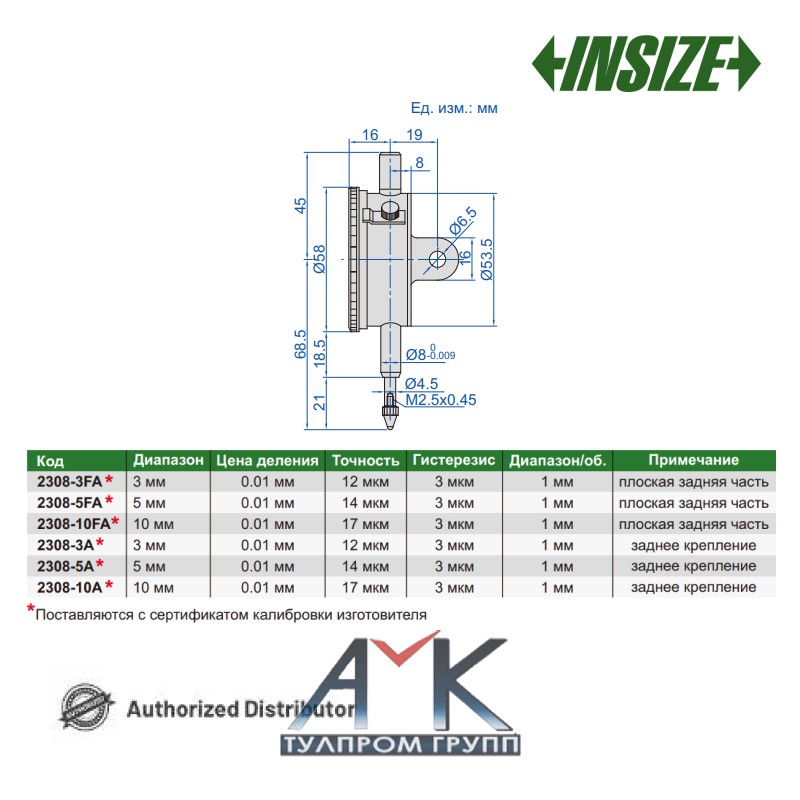 Индикатор часового типа арт.2308-10А от производителя INSIZE.