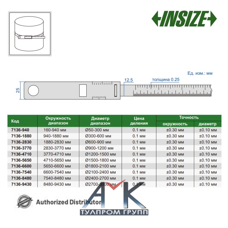 Циркометр / измерительная лента арт.7136-940 от INSIZE.