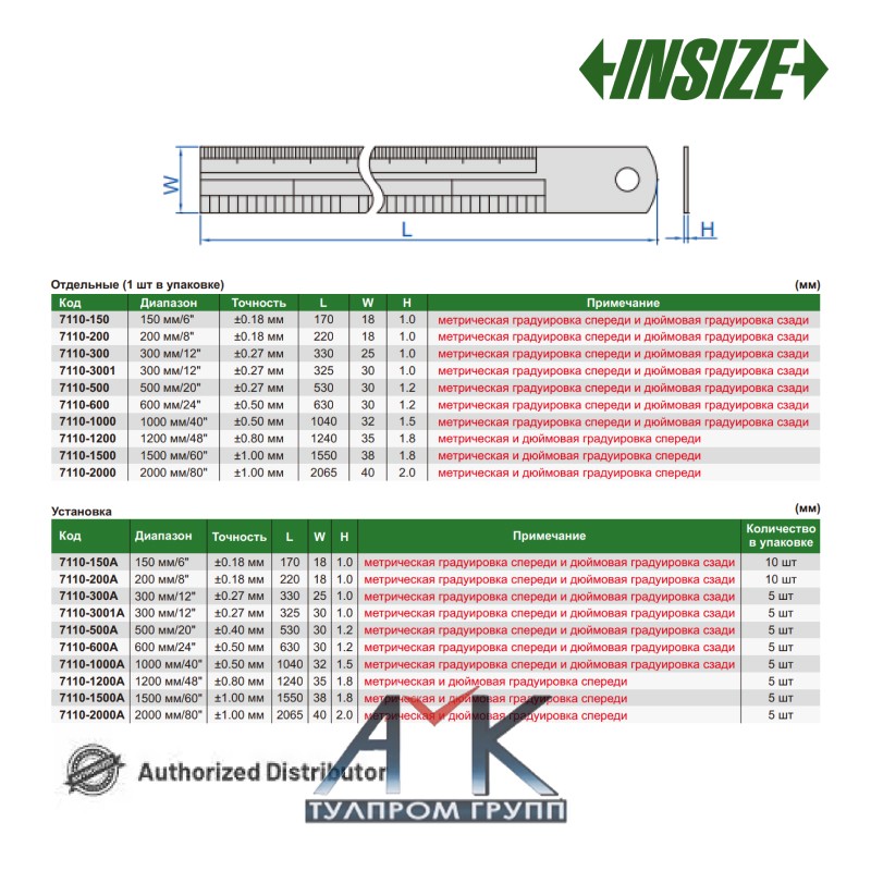 - Особенность:Жесткая. Метрическая шкала на лицевой стороне и шкала в дюймах с обратной стороны. Безбликовая поверхность