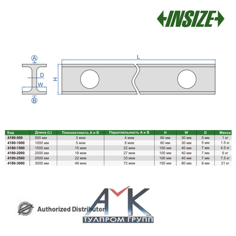 Поверочная линейка из алюминиево-магниевого сплава арт.4180-500, с широкой рабочей поверхностью двутаврового сечения, от INSIZE