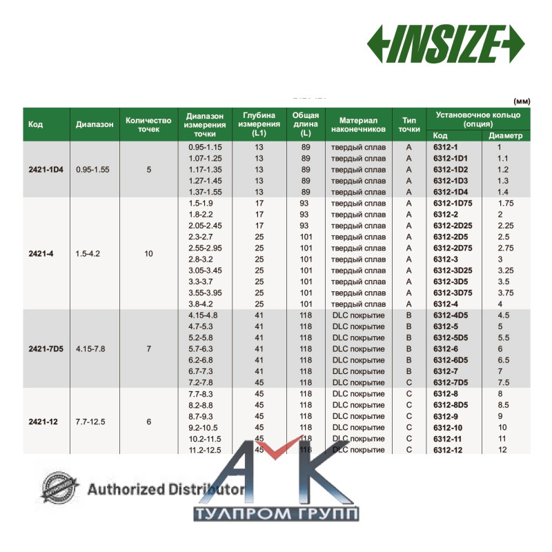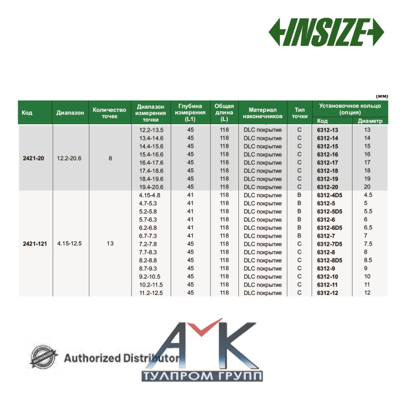 Цанговый индикаторный нутромер арт. 2421-121 от производителя INSIZE.