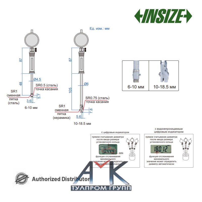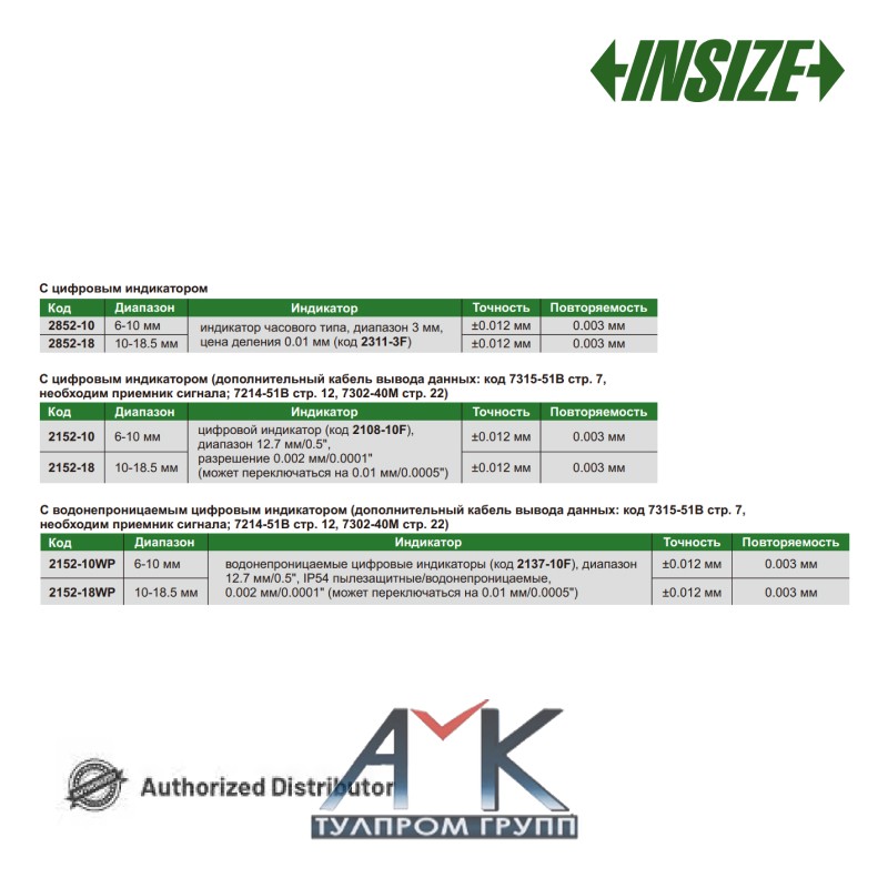 Индикаторный нутромер для небольших отверстий арт. 2852-10 от производителя INSIZE.