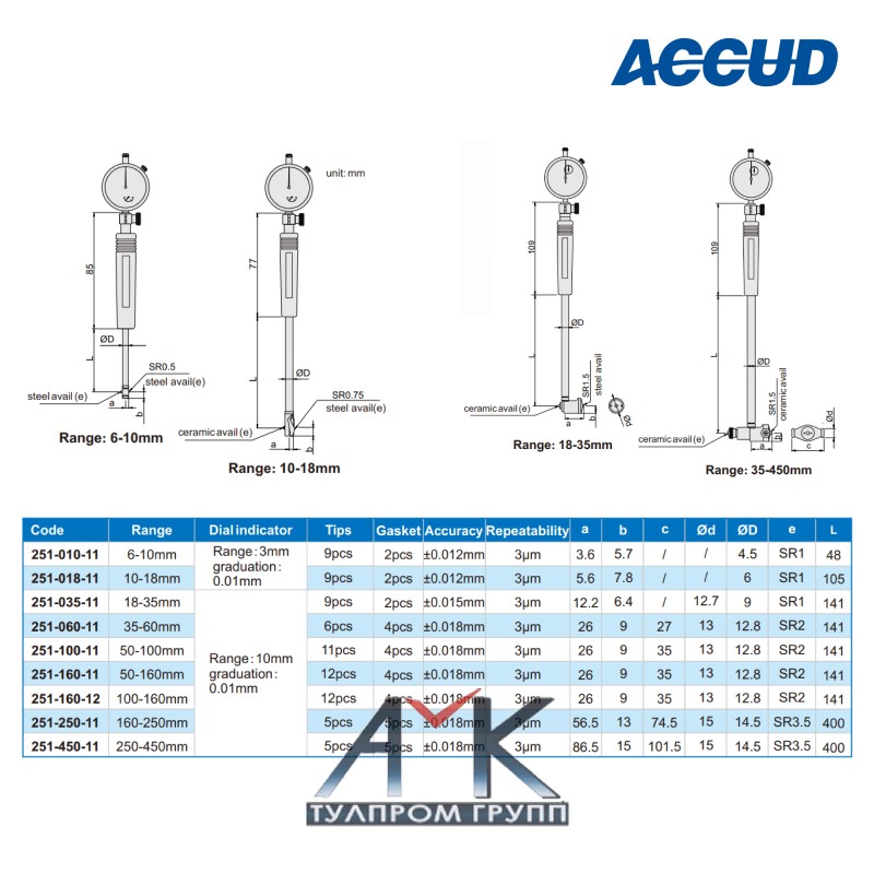 Нутромер двухточечный индикаторный арт.251-100-11 от производителя ACCUD.