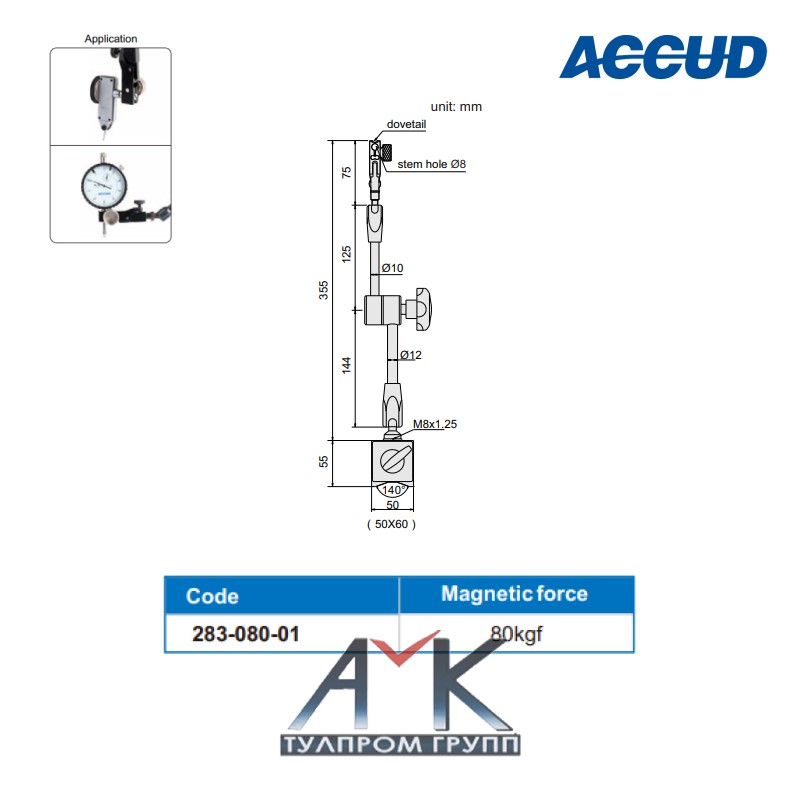 Штатив универсальный на магнитном основании арт.283-080-01, 355 мм, с возможностью регулировки, сила отрыва 80кгс, 8 мм "ласточкин хвост", от ACCUD