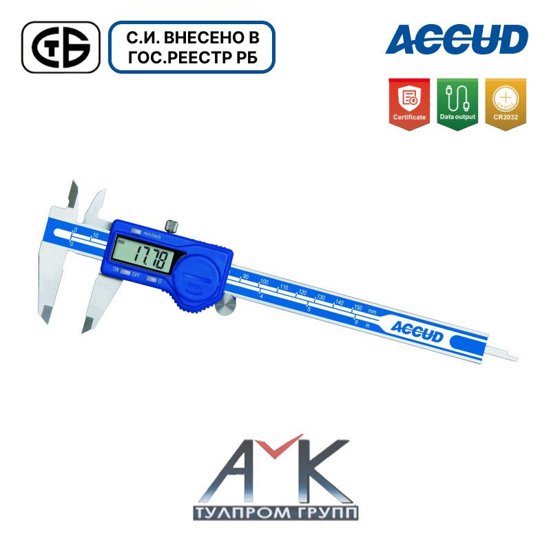 Штангенциркуль цифровой арт.111-006-12, диап. измерения 0-150 мм / 0-6", дискретность 0,01 мм / 0,0005", по DIN 862 с выводом данных, от ACCUD