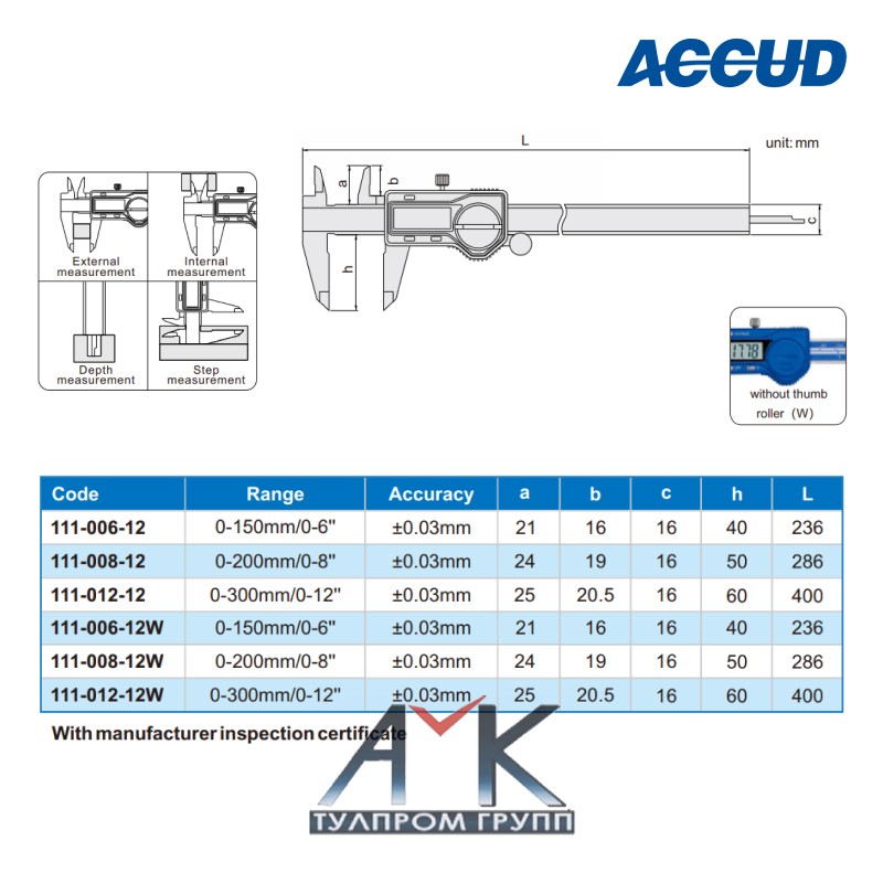 Штангенциркуль цифровой арт.111-006-12 от производителя ACCUD.