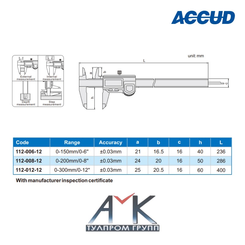 Штангенциркуль влагозащитный цифровой арт.112-006-12 от производителя ACCUD.