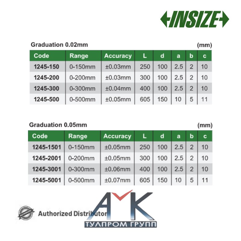 Штангенглубиномер с зацепом арт. 1245-300, диап. измерения 0-300 мм, дискретность 0,02 мм, от INSIZE