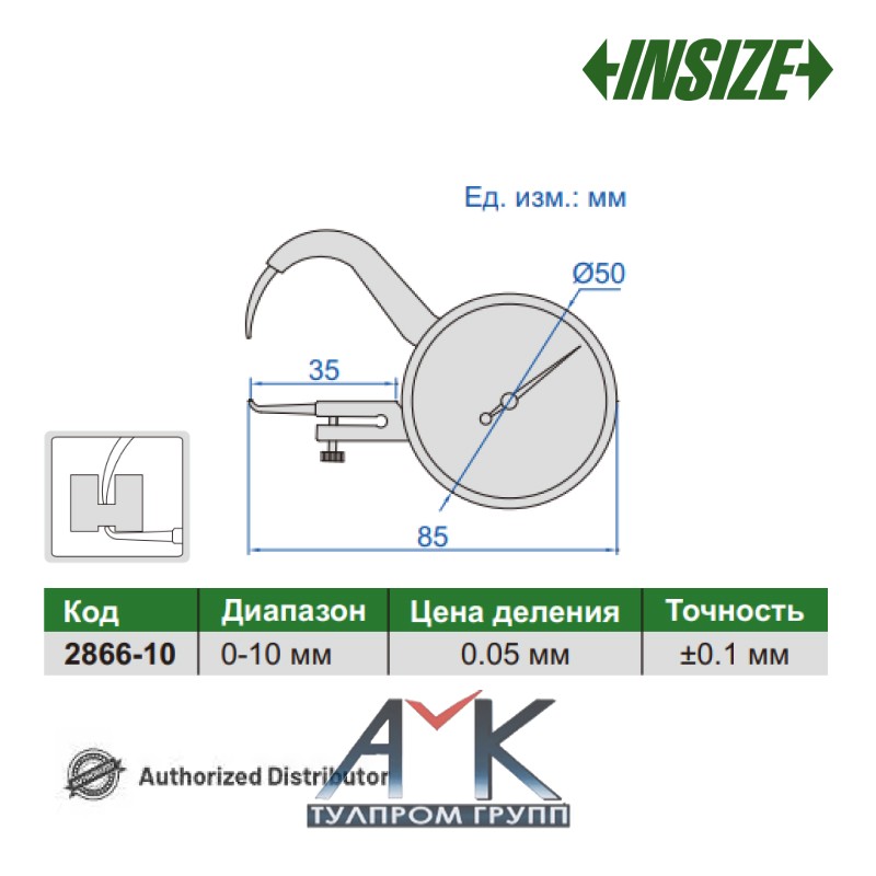 Аналоговый/индикаторный толщиномер арт. 2866-10 от производителя INSIZE.