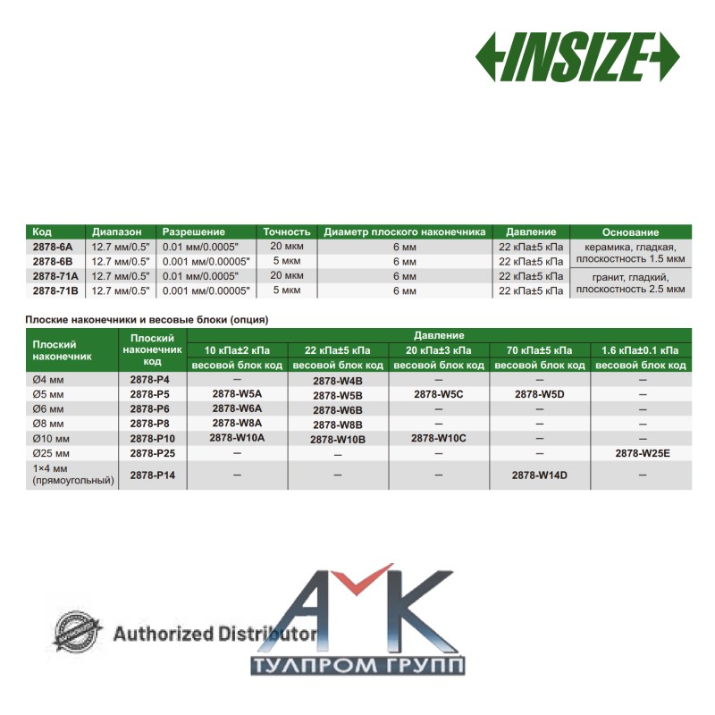 Цифровые толщиномеры для мягких материалов арт. 2878-6А, диап. измерения 0-12,7 мм / 0-0,05", дискретность 0,01 мм / 0,0005", от INSIZE