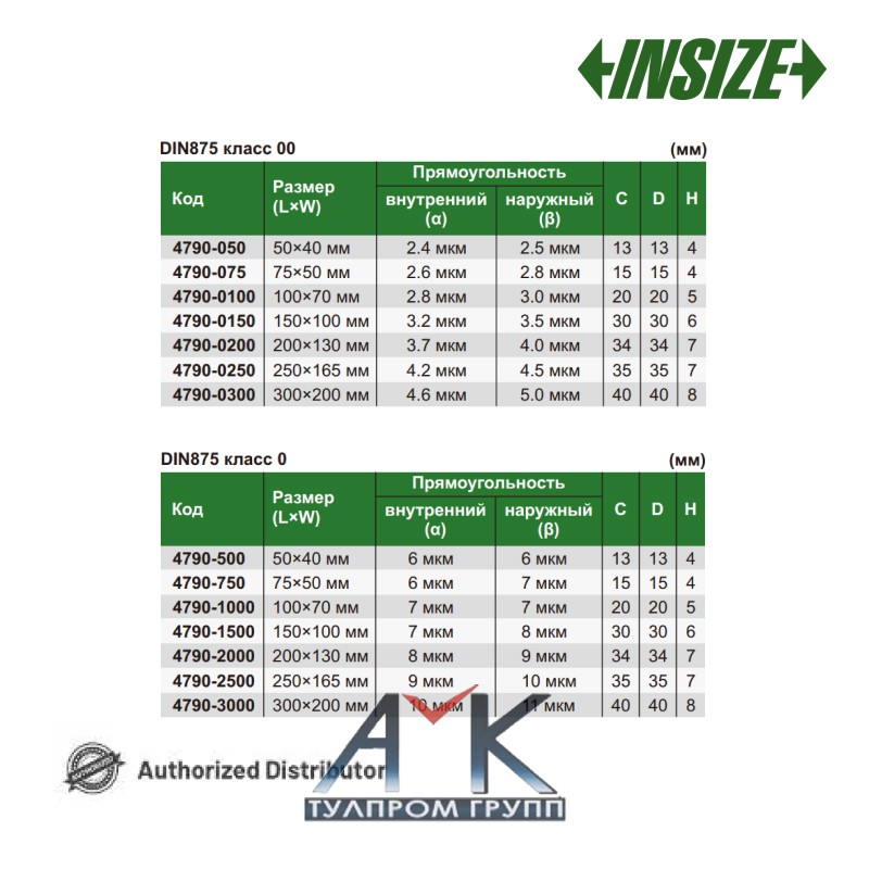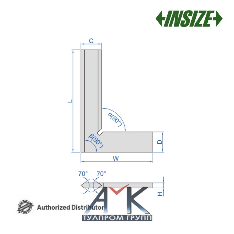 Угольник со скошенным краем 90° 50 х 40 мм арт. 4790-050, по DIN 875, класс 00, из упрочненной нерж. стали, от INSIZE