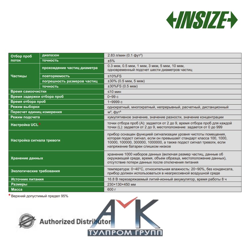 Портативный счетчик частиц в воздухе (датчик чистоты воздуха) арт.0811-CA01, диапазон 2,83 л/мин (0,1 фут3) от производителя INSIZE.