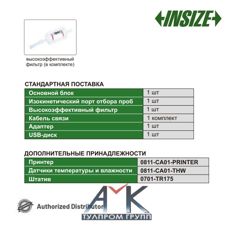 В стандартную комплектацию поставки входит: основной блок (1 шт.), изокинетический порт отбора проб (1 шт.), высокоэффективный фильтр (1 шт.), кабель связи (1 шт.), адаптер (1 шт.), USB-диск (1 шт.).