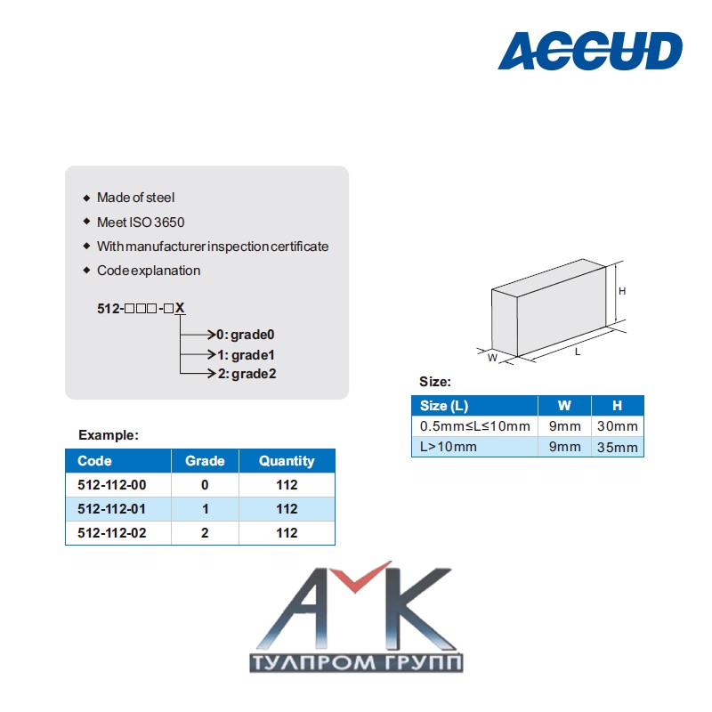 Меры длины концевые плоскопараллельные стальные арт.512-112-02 от производителя ACCUD.