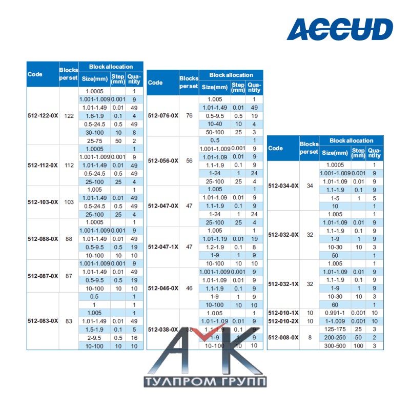 Меры длины концевые плоскопараллельные стальные арт.512-112-02, кл. т. 2, ISO 3650, набор - 112 шт., от ACCUD