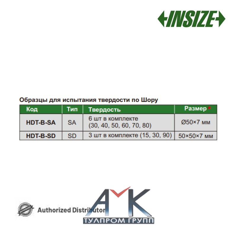 Набор мер твёрдости (образцов твердости) по резине по SHORE/Шору арт.HDT-B-SD от производителя INSIZE.