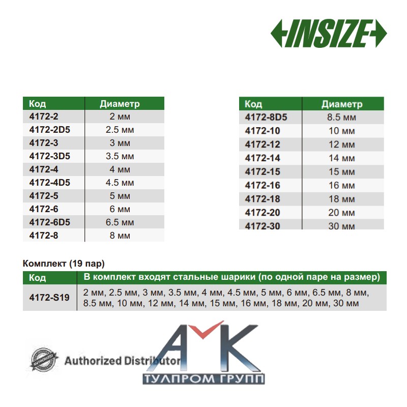 Твердосплавная контрольная мерная сфера арт. 4172-2D5 от производителя INSIZE.