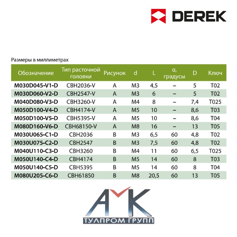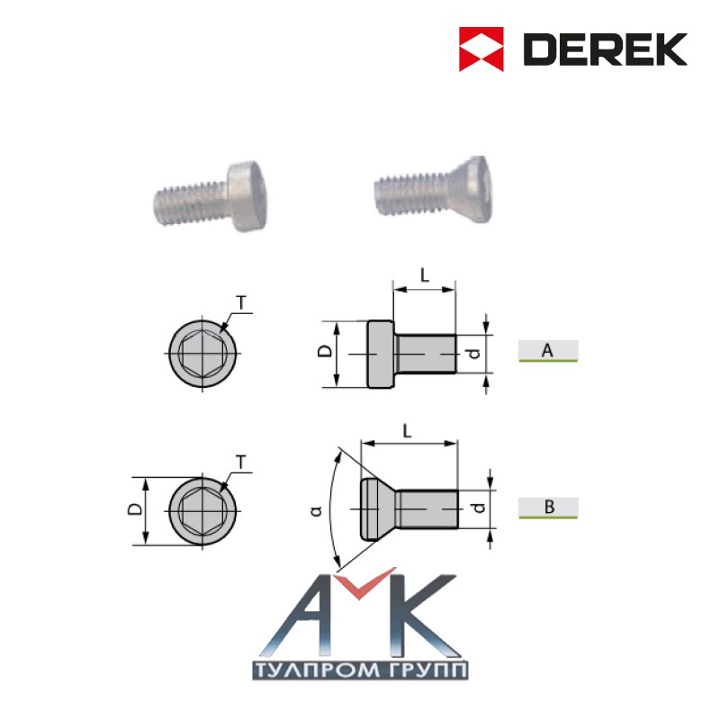 Винт М5 арт.M050D100-V4-5, для крепления резцовых вставок для расточных головок типа CBH, от производитенля DEREK.