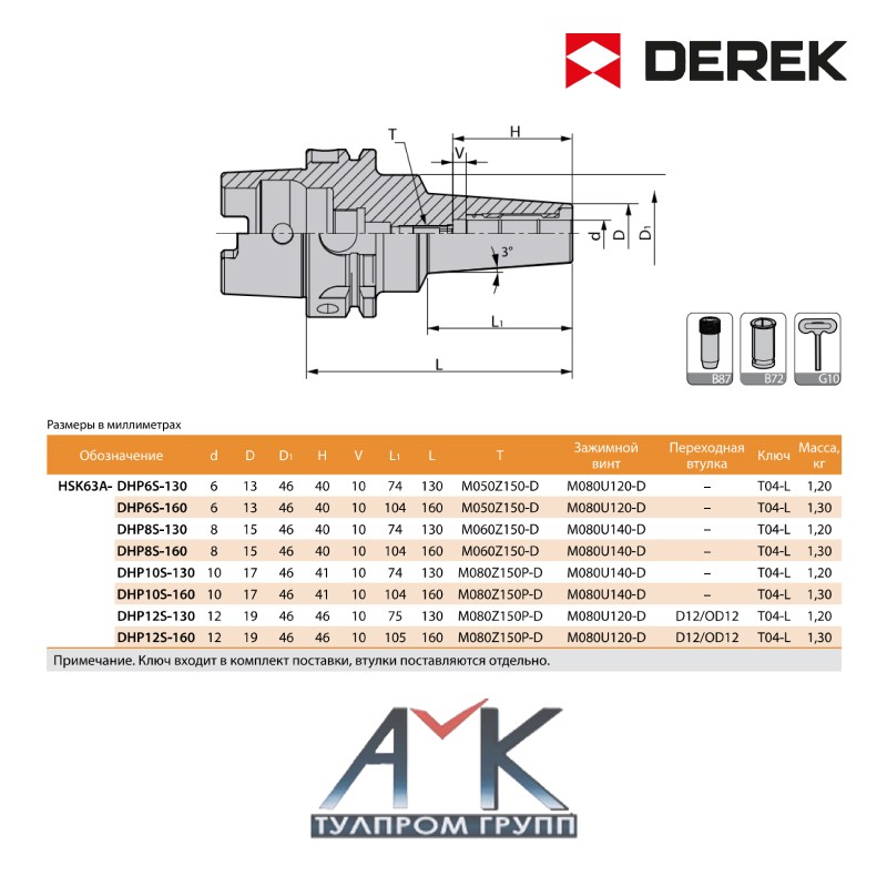 Удлиненная гидропластовая оправка/патрон/гидрооправка арт. HSK63A-DHP12S-160 от производителя DEREK.