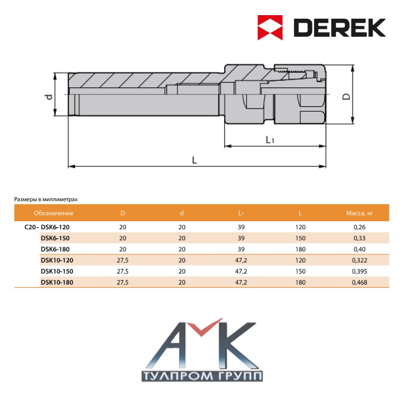 Цанговый удлинитель DSK для высокоскоростной обработки артикул C20-DSK6-120, от производителя DEREK.