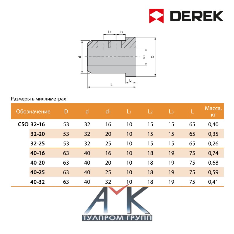 Переходная втулка CSO к патронам с приспособлением для подачи СОЖ артикул CSO32-16, от производителя DEREK