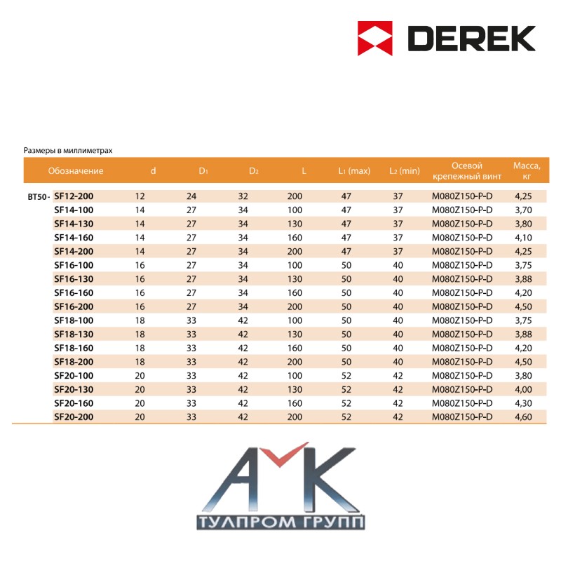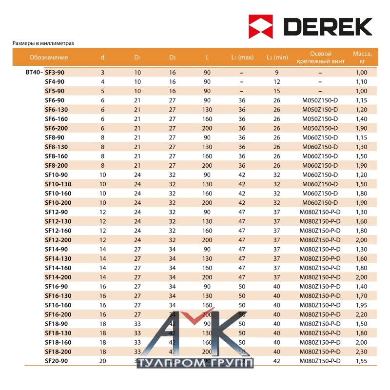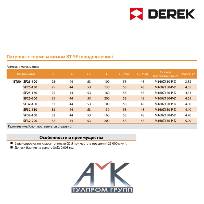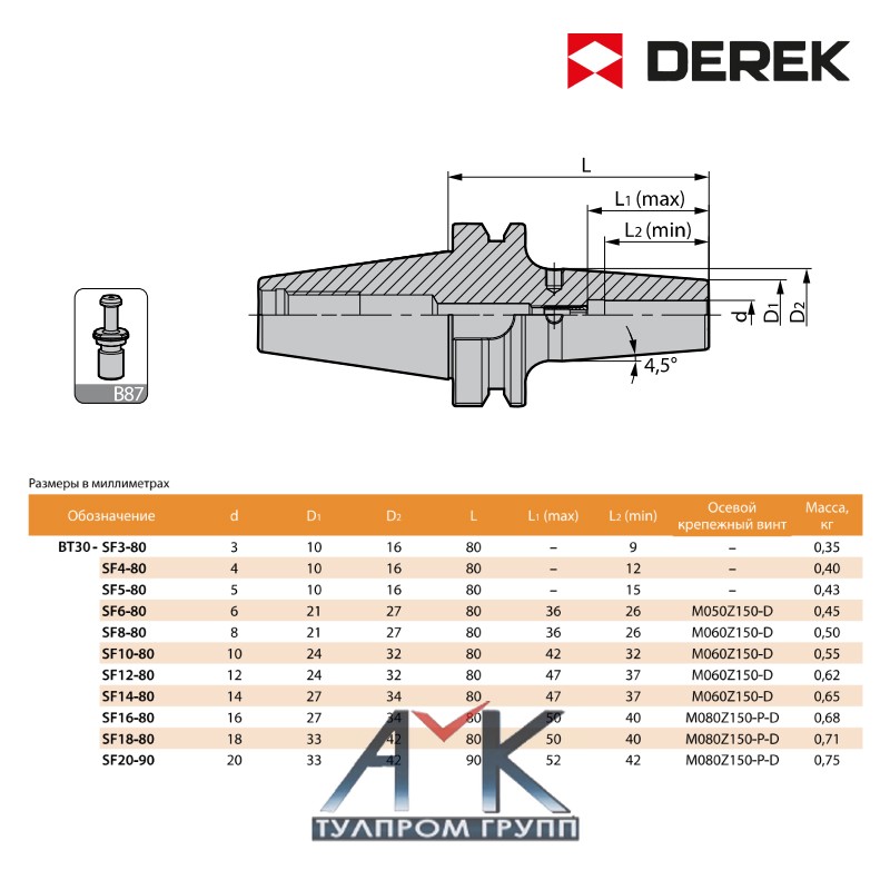 Термооправка / патрон с термозажимом BT-SF арт. BT30-SF3-80 от производителя DEREK.