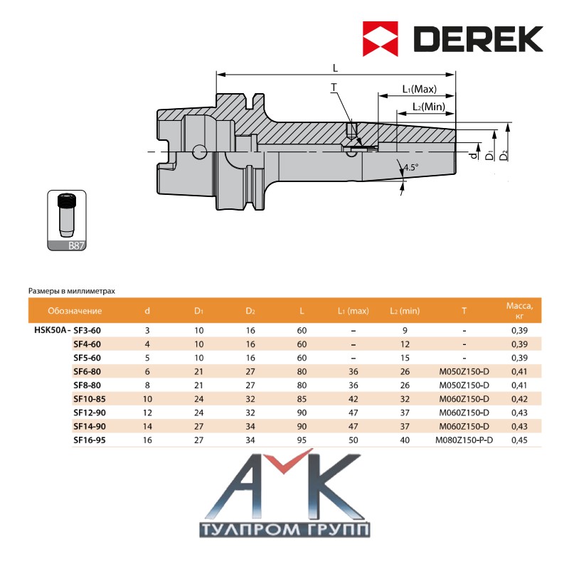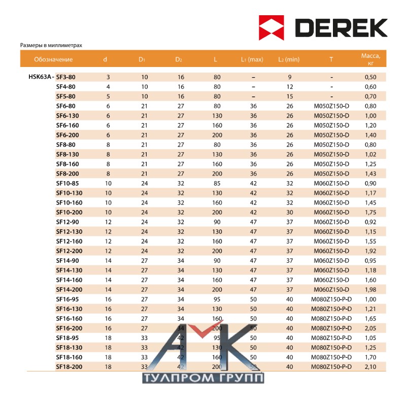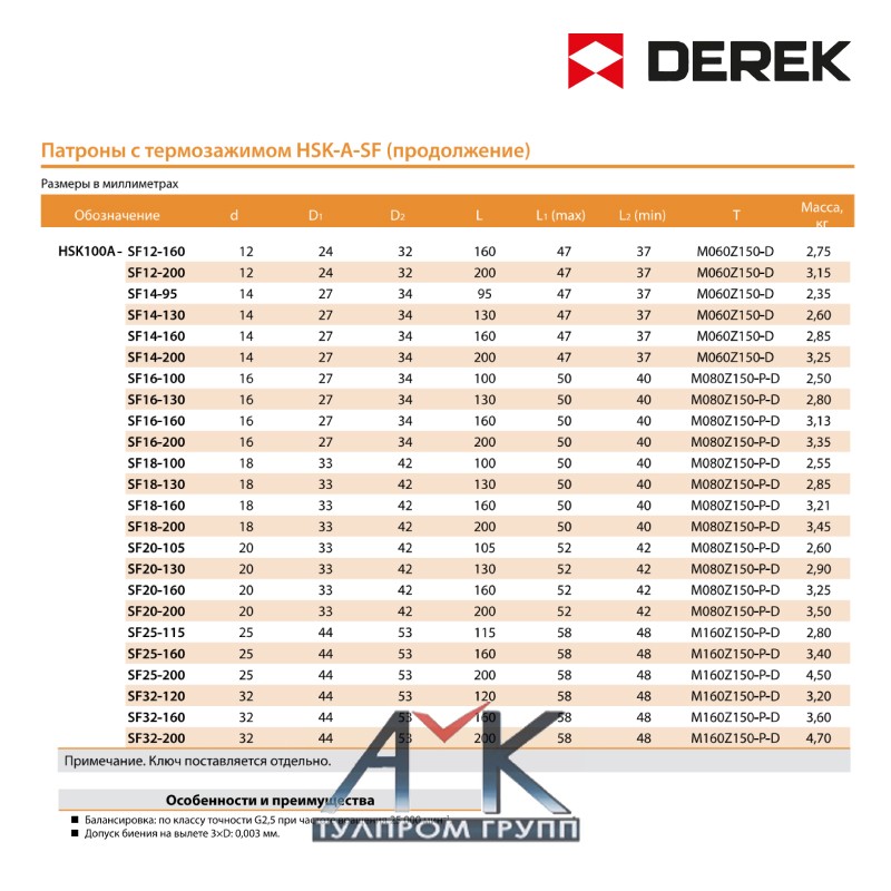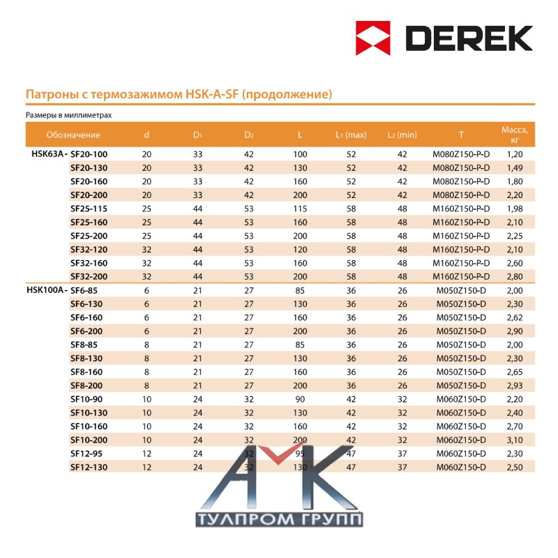 Термооправка / патрон с термозажимом серии HSK-A-SF серийный номер HSR50A-SF3-60, от изготовителя DEREK