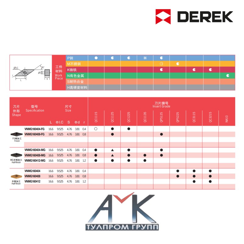 Твердосплавная пластина арт. VNMG 160412-MG QC1225 от производителя DEREK.